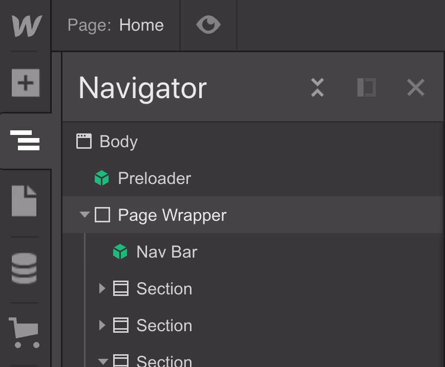 The bottom navigation bar follows the Breadcrumb principle, and it shows the hierarchy of your current/selected element path. Webflow breadcrumbs help in SEO and easy navigation.