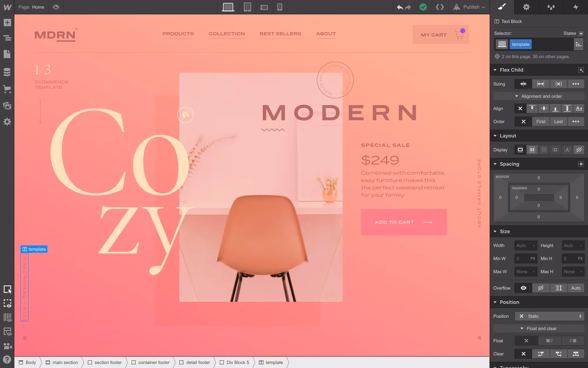 With Webflow, you can easily create scalable stores for your clients. Create unique store layouts that blend with brand ethos using a potent visual builder. You can easily alter the Home page or Gallery for your e-commerce store. Plus, you can customize the purchase flows and product fields to better serve your industry-specific needs. If you dislike the Liquid Templating system of Shopify, give Webflow a try.